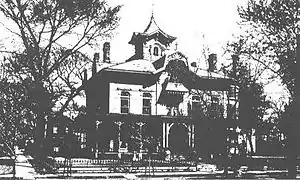 The house was built by John Drew for John Dahms in 1871. He lost his fortune and was forced to sell the house in a sheriff's sale in 1880 to Frank H. Miller, a wholesale grocer.[2] He had been Davenport's largest wholesale grocer and jobber from the Civil War to the turn of the 20th century.[3]