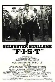 F.I.S.T. (stylized on-screen as F•I•S•T) is a 1978 American neo-noir crime drama film directed by Norman Jewison and starring Sylvester Stallone. Stallone plays a Cleveland warehouse worker who becomes involved in the labor union leadership of the fictional "Federation of Inter-State Truckers" (F.I.S.T.). The film is loosely based on the Teamsters Union and their former President Jimmy Hoffa.[4]
