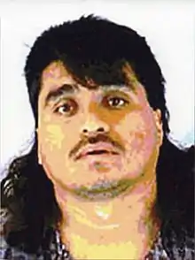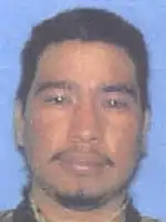 | Michael Paul Astorga was wanted for the November 5, 2005, shooting death of Candido Martinez, 27, in Albuquerque, New Mexico and the murder of Bernalillo County Sheriff's Deputy James Frances McGrane Jr. on March 22, 2006 during a routine traffic stop just south of Tijeras, New Mexico. He was profiled on the television show America's Most Wanted: America Fights Back on April 1, 2006. Astorga was captured by the Agencia Estatal De Investigaciones del Estado de Chihuahua on April 3, 2006 in Ciudad Juárez, Chihuahua, Mexico, where he had hid out, just across the border from El Paso, Texas.[49] He was a Mexico prisoner charged with possession of firearms, ammunition, and marijuana but came into U.S custody after Bernalillo County Sheriff's Officers posted $2,000 bond to Mexican authorities. | |||