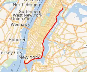 The entire route is in the New York City borough of Manhattan.
