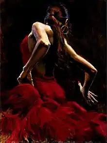 Fabian Perez (Spanish: Fabián Pérez) is a visual artist from Buenos Aires, Argentina, known for his paintings of tango and flamenco dancing and nightclub life, as well as for his acknowledged portraits of world celebrities. Perez' artwork has gained considerable international attention and praise from qualified sources.[1][2][3][4][5] The artist has proposed "Neo emotionalism" as the name to designate his art style characterized by emotion, mundane passion, dramatic narrative, and a heady atmosphere.[6][7] He was born on November 2, 1967.