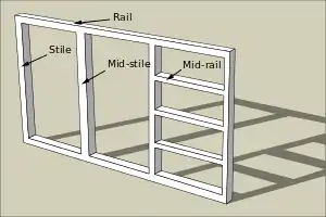 Face frames are composed of a set of intersecting frame members that are joined to one another using one of a selection of woodworking joints. The most common joints used are the butt joint or mortise and tenon. The frames consist of vertical stiles and horizontal rails. Individual compartments within the cabinet are divided by mid-stiles and mid-rails. Individual drawers are usually separated by mid-rails and mid-stiles occur between doors and wherever vertical partitions exist within the cabinet (see image Parts of a face frame).
