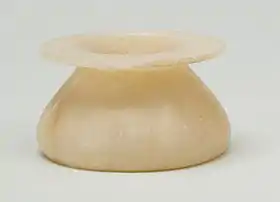Archaeological remains and chemical analyses indicate the use of face powder dating back from between 2000 and 1200 BC, and include lead fibres, a common cosmetic ingredient used in ancient Egypt.[5] Kohl jars used to store eyeliner as well as stone containers holding face powder were discovered in graves as this promised the ancient Egyptians eternal beauty in the afterlife.[5] Men and women used an early form of rouge powdered blush for their cheeks which was made from red ochre.[6] Greek queen Cleopatra heavily influenced the ancient Egyptian beauty standard with a distinctive make-up style, inspiring the ancient Egyptians to paint their eyes with green and blue powders.[7] Face powder was also considered to have medicinal purposes to protect people from illness.[5]