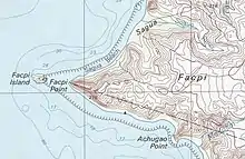 Facpi Point is a headland in the south-west of the island of Guam. It is three kilometers due west of Mount Lamlam, and five kilometers north of Umatac village. The point was designated a National Natural Landmark in 1972.[1] Facpi Point marks the southern end of Agat Bay, as well as an end point of the boundary between the villages of Agat and Umatac. A small islet, Facpi Island, is off the tip of the point.