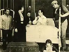 As described in an adaptation published in the film magazine Shadowland,[2] Billy Bartlett (Pallette) suspects his wife Laura (Mayo), who has been spending time with Philip Evans (Buckley), is having an affair. When upstairs neighbors Jack and Blanny Wheeler (Trenton and Allison) visit to play cards, Jack confides in Billy that, whenever he needs an explanation for his absence, he tells his wife he is going to the Mystic Shrine. Jack and Laura leave separately, and Billy and Blanny discuss their mutual suspicions and get drunk. Jack, Laura, and Philip return to the apartment and Billy and Blanny are wrongly accused of being unfaithful. Laura storms out. Two days later, after having movers go to get the furniture, she returns to the apartment after becoming jealous, and discovers Blanny under Billy's bed. However, the maid (Conley) explains that this is all innocent and Blanny was there looking for Jack. Jack overhears, and explains to Blanny that "Mystic Shrine" was his cover for going out to play poker. They reconcile. Laura, deciding to give up the promiscuous Philip, is also reconciled with Billy.