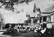 The sisters soon sought the patronage of the Presbyterian Church in Brisbane, and this was granted in May 1909.[8] The school proved popular, and steady growth in students numbers necessitated the construction of new dormitories early in 1911, with the school's boarding population nearing 16 out of the 60 pupils enrolled.[9]
