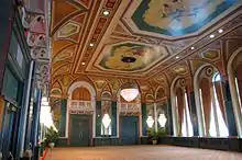 The Ballroom is an event space at the hotel which features an oil-painted ceiling.