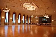 In addition to lodgings, the hotel offers a number of event spaces. The hotel features an entire floor of function rooms, primarily used for conferences.[15] A notable room at the hotel includes the Ballroom, which features an oil-painted ceiling from the hotel's opening.[15] The Concert Hall is another event space at the hotel that is outfitted with a Casavant Frères pipe organ.[16] With five manuals and one-hundred-and-seven stops, it was the largest pipe organ in Canada.[16] Another notable event space within the hotel is the Imperial Room, which was once used as a nightclub from the 1940s to the 1990s.[17] The space featured a stage at the north-end of the room, a sunken floor with tables and a dance floor in the middle, and raised booths at the other end of the room.[18] The room is presently used as a meeting and event space, most often by the Empire Club of Canada.[19]