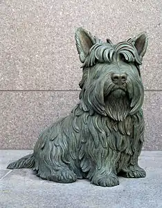 Fala (April 7, 1940 – April 5, 1952), a Scottish Terrier, was the dog of United States president Franklin D. Roosevelt. One of the most famous presidential pets, Fala was taken to many places by Roosevelt.[1] Given to the Roosevelts by a cousin, Fala knew how to perform tricks; the dog and his White House antics were mentioned frequently by the media and often referenced by Roosevelt and his wife Eleanor. Fala outlived Roosevelt by seven years and was buried near him.
