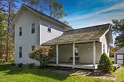 The Fallasburg Historic District contains 14 historic structures, as well as a cemetery and the remains of a sawmill and gristmill. The structures include 12 houses, a schoolhouse, and Fallasburg Bridge. These structures primarily date from the early 1840s to the late 1860s, and are vernacular frame buildings with little decoration. Some have simple Greek Revival details, but only two structures have even the basic Greek Revival gable returns.[2]