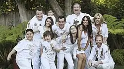 Nonetheless, Claire manages to get the whole family perfectly dressed and barely on time for the picture. However various squabbles come up, including the kiss and Cameron being angry over the destroyed house. Claire's perfectionism finally gets to Jay and he starts a mud fight, dirtying their perfect white costumes. This loosens everyone up, and instead of the perfect portrait the family instead take a series of fun pictures in varying positions. While later hanging the framed picture, Claire admits that she loves the result more than any perfectly posed family portrait.