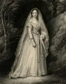 On 25 January 1842, Lacy married Thomas Hailes Lacy who was an actor who at that time managed The Theatre in Sheffield. The marriage probably took place at St Paul's church in Covent Garden,[1] but maybe in Sheffield.[2] They toured England together. Her husband's roles included Jacques (As You Like It) and Banquo (Macbeth). He would appear with her when she played Countess Wintersen in The Stranger, Nerissa in The Merchant of Venice, and Virginia in James Sheridan Knowles's Virginius.[2]