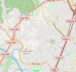 Northwest Hills is located on the northwestern side of Austin.[2] The neighborhood is sometimes referred to as Far West after its main street, Far West Boulevard,[3][4] which stretches from Mopac on the east and goes deep into the residential homes on the west prior to reaching the Ladera Norte street, close to Capital of Texas Highway.[5] The commercial area between Mopac and Mesa Drive, which intersects with Far West Boulevard, is the biggest commercial area of the neighborhood. The boulevard hosts several local and national businesses, stores, restaurants, apartments, and business offices. The streets adjacent to Far West Boulevard are the most densely populated areas of Northwest Hills.[3]