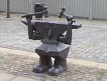 The pedestrianised area of West Street, in the town centre, is home to a permanent exhibition of the work of 12 blacksmith artists celebrating the achievements of Henry Cort, the 18th century 'man of iron' who pioneered the iron refining process at Funtley near Fareham. The puddled wrought iron sculptures are themed on Fareham's market town history and the exhibition is the largest of its type in Britain.[7]