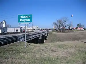 FM 2759 starts as a four-lane road at the I-69/US 59 underpass and goes southwest for 1.8 miles (2.9 km). In this stretch, FM 2759 is also known as Crabb River Road. The highway is a continuation of State Highway 99 (SH 99) which heads northeast from I-69/US 59. Nearby communities include Greatwood, Tara and Canyongate at the Brazos. Businesses along Crabb River Road include a car dealership, a few petrol stations, and a number of stores and restaurants. There are traffic signals at Sansbury Boulevard and Tara Drive and bridges over Middle Bayou and Rabbs Bayou. FM 2759 turns sharply to the east-southeast at the traffic light controlled intersection with FM 762.[2]