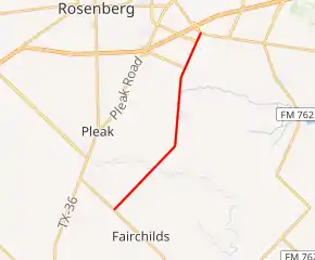 Northeast end of FM 2977 at FM 762 in Rosenberg