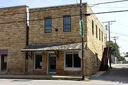 The Farmers and Merchants Bank is a historic commercial building on Main Street, facing the courthouse square, in Mountain View, Arkansas. It is a two-story stone structure, with a flat roof obscured by a parapet. Built out of rusticated stone, it has vernacular Romanesque styling in its rounded window and door openings on the first floor, and its crenellations at the top of the parapet. It was built in 1910, during the city's first major period of stone construction, by Bill Laroe, who also built the Stone County Courthouse.[2]