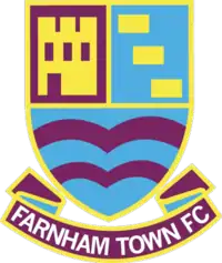 After finishing bottom of the London Spartan Premier Division in 1979–80, Farnham transferred to the Combined Counties League. The 1981–82 season saw them play in the Western Division as the league was temporarily split into two divisions, before reverting to a single division the following season.[4] They were runners-up in 1986–87 and went on to win the league in 1990–91. The following season saw them retain the league title, as well as winning the Premier Challenge Cup and the Elite Cup.[5] They were subsequently promoted to Division Three of the Isthmian League but resigned from the league prior to the start of the 1992–93 season as they were unable to raise the money needed to upgrade the Memorial Ground and were then too late to rejoin the Combined Counties League until the following season.[2]