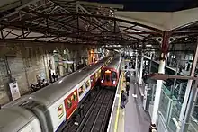 The London Underground part of the station is served by the Metropolitan, Hammersmith & City and Circle lines, between King's Cross St Pancras and Barbican. All three lines share the same pair of tracks from Baker Street Junction to Aldgate Junction making this section of track one of the most intensely used on the London Underground network.