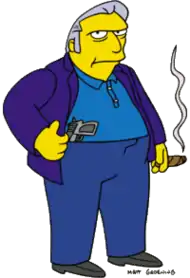 The writers originally wanted Sheldon Leonard to voice Fat Tony. When they were unable to get him, they cast Joe Mantegna.[1] It is his longest-running role.[4] Mantegna said, "You feel honored that they asked you to do a voice. The fact that they bring you back and keep writing for the character, it is very satisfying."[5] Mantegna based his raspy voice for Fat Tony on his Uncle Willy,[6][7] a long-standing cigarette smoker.[8] He insists that the producers must "not let anyone else do his noises," even going so far as to say, "If Fat Tony sneezes, I want to be there." This is referenced in the season 20 episode "Sex, Pies, and Idiot Scrapes, where the script required only grunting. Despite this, Phil Hartman voiced the character in the season 7 episode "A Fish Called Selma".[1][9] Mantegna voiced Fat Tony in a scene in The Simpsons Movie that almost got cut.[10] Of the Fat Tony episodes, Mantegna favors "Bart the Murderer" and "The Mook, the Chef, the Wife and Her Homer", because they are the character's first appearance and a season premiere.[11]