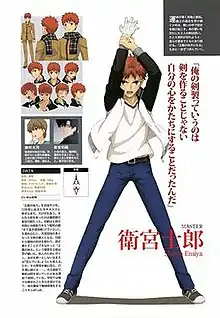 Producer Atsuhiro Iwakami proposed that an adaptation of the Unlimited Blade Works route would be a logical continuation to the events of Fate/Zero. Iwakami was certain that the plot of this route would be better presented as a TV series rather than a full-length film.[3] Ufotable said that they wished to develop the series in a dark tone similar to Fate/Zero with Shirou Emiya's characterization also being altered from the original visual novel.[4] As a result, Miura pointed out that in future work he would prefer to focus more on revealing the character of Shirou as a character through his personal traits, rather through women associated with him, in contrast to the visual novel. The CEO of Type-Moon believed that only Nasu himself was able to convey all the ideas he put into Shirou, and help them reflect on the screen correctly and deepen public perception of the hero.[5] Another character that Miura requested Kinoko Nasu to expand was Illya, who received development in the second half of the series when she learns of her father's past and is driven by angst as a result.[6]