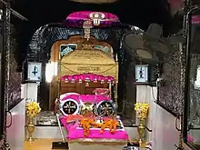 - Fatehgarh Sahib Gurdwara: the main Sikh temple in the town, in whose basement is Bhora Sahib. The Gurdwara stands on a high point of the town, has an Indo-Islamic architecture with a square plan, a ribbed lotus dome and cusped arches. The floor is made of marble and is decorated with a mosaic. It is three storeyed consisting of a basement, a central pavilion and dome level above. The basement has a copy of the Sikh scripture, Khalsa swords, dagger and other holy historic relics. It is marked with silence, usually with visitors as well as pilgrims seated and praying. The upper level with the central pavilion also houses the Guru Granth Sahib and features kirtan singing. The upper levels and domes were added by Yadavinder Singh in 1955, after India gained its independence from the colonial British Empire.[1]