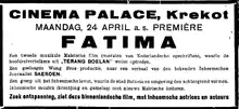 - "Filmaankondiging Cinema: Fatima" [Film Announcement: Fatima]. Bataviaasch Nieuwsblad (in Dutch). Batavia: Kolff & Co. 25 April 1938. p. 3. Retrieved 22 January 2013.