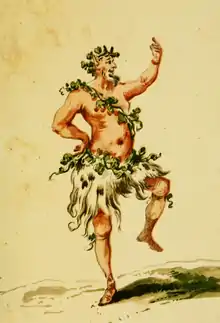 Two festivals, called Faunalia, were celebrated in his honour—one on 13 February, in the temple of Faunus on the island in the Tiber, the other on 5 December, when the peasants brought him rustic offerings and amused themselves with dancing.[2]
