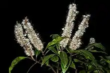 The flowering period is in the summer months from October to January, and the flowers are followed by the appearance of whitish hairs – covered nuts that usually decorate the tree from November to April.[3]