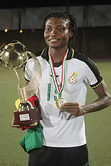 Faustina Ampah had her FIFA World Cup debut at the 2012 FIFA U-20 Women's World Cup hosted by Japan in 2012. Her debut game was against United States that ended 4:0 in favor of United States.[1] Faustina Ampah was also part of the 2014 FIFA U-20 Women's World Cup and 2016 FIFA U-20 Women's World Cup making her the only Ghanaian to represent the nation at three FIFA U-20 Women's World Cup.