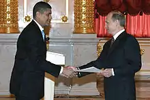 - "President Vladimir Putin accepted letters of credence from the new ambassadors of several foreign countries". The Kremlin, Moscow: Presidential Press and Information Office. 20 April 2005. Archived from the original on 28 August 2005. Retrieved 2008-10-07.