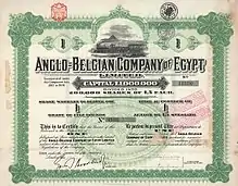 - Historic stock exchange certificate of the Fayoum Light Railways Company issued on 1 October 1899 and rubber stamped on 1 May 1944.