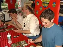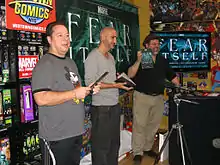 To promote Fear Itself: Fearsome Four #1, one of the tie-in books, writer Brandon Montclare and artists Michael Kaluta and Ryan Bodenheim appeared at Midtown Comics Downtown on June 8, 2011, where they signed copies of the book.[20][21] Writers Greg Pak, Fred Van Lente and editor Mark Paniccia later held a signing at the same store on June 18 for Alpha Flight #1, which is also part of the storyline.[22]