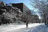 In Pittsburgh, both the impact and severity of the storm caught many by surprise. Snow began falling in earnest late Friday morning. The sudden onset of the storm forced many local school districts, especially districts south of the city, to close early due to rapidly deteriorating road conditions; this is an extremely uncommon event for schools in southwestern Pennsylvania.[44] Nearly all schools, including the Pittsburgh Public Schools, cancelled classes the following week. Most local universities were also forced to cancel classes for much of the following week due to the storm's effects. Additionally, over 130,000 people in the Pittsburgh area were without power as a result of the heavy, wet snow.[45] For many residents, power was not restored until Monday, February 15.