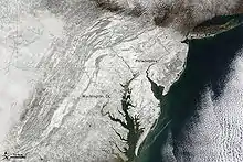 | Maximum snowfall or ice accretion | 38.3 inches (97 cm) at Elkridge, Maryland |