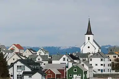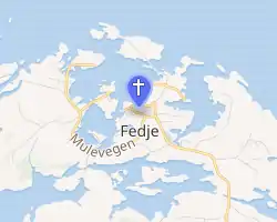 Fedje Church (Norwegian: Fedje kyrkje) is a parish church of the Church of Norway in Fedje Municipality in Vestland county, Norway. It is located in the village of Fedje on the northern coast of the island of Fedje. It is the church for the Fedje parish which is part of the Nordhordland prosti (deanery) in the Diocese of Bjørgvin. The white plastered brick church was built in a long church design in 1941 using plans drawn up by the architect Ole Halvorsen. The church seats about 400 people. The church is built of brick and covered with white plaster. This was chosen because it is better suited than wood for the harsh marine climate on Fedje. The roof consists of slate from Alta and the tower is covered with copper.[1]