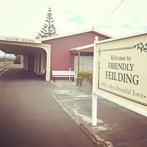 Feilding railway station was a station on the North Island Main Trunk line in Feilding, New Zealand. It was opened on 1 October 1876 and closed on 1 July 2002.[2] The station is now used by Feilding Information Centre[3] and an occasional excursion train.[4]