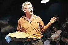![]() Felix Wurman passing the donation basket at the Church of Beethoven (photograph by Morgan Petroski for the Albuquerque Journal) | |