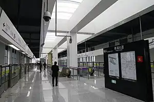Fengpu Avenue (Chinese: 奉浦大道; pinyin: Fèngpǔ Dàdào) is a station on Line 5 of the Shanghai Metro. Located at Fengpu Avenue and Huhang Highway in the city's Fengxian District, the station is located on the main branch of Line 5 and opened as part of the southern extension of Line 5 on 30 December 2018.[1] It is an elevated station. During the planning stages and early part of construction, it was known simply as Fengpu (奉浦).[2][3]