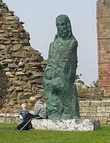 ![]() Statue of St Cuthbert by Fenwick Lawson, Lindisfarne Priory | |