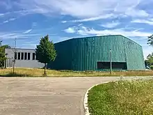 The Kupferhaus (in English "copper house") was designed from 2005 to 2008 by the "Planungsbüro Rohling". Within the framework of an architectural competition its proposal emerged as the winner. The plot on which the Kupferhaus stands amounts to a total of 3,572 m2. In addition to the concert hall, the building complex also includes classrooms and the school cafeteria. In addition to some school performances (plays and concerts), various cultural events take place in the Kupferhaus. The costs for the entire building complex amounted to 8.3 million Euros.[2] The capacity of the concert hall is 450 seats.