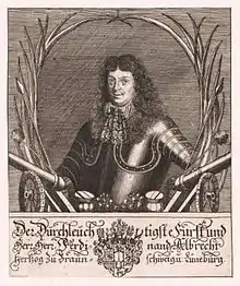 Ferdinand Albert I (German: Ferdinand Albrecht I.; 22 May 1636 23 April 1687), a member of the House of Welf, was a Duke of Brunswick-Lüneburg. After a 1667 inheritance agreement in the Principality of Brunswick-Wolfenbüttel, he received the secundogeniture of Brunswick-Bevern, which he ruled until his death.