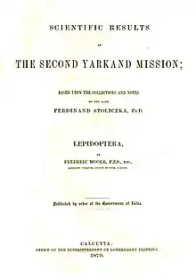 - Scientific results of the second Yarkand mission : based upon the collections and notes of the late Ferdinand Stoliczka. Biodiversity Heritage Library. London: Eyre & Spottiswoode. 1891. Retrieved 16 October 2019.