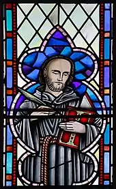 Stained glass window in the sanctuary of St. Patrick's Cathedral in Armagh, depicting Ferdomnach[1]