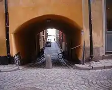 Ferkens Gränd (Swedish: Alley of Ferken) is an alley in Gamla stan, the old town of Stockholm, Sweden, connecting Skeppsbron to Österlånggatan. It forms a parallel street to Drakens gränd, Lilla Hoparegränd, Pelikansgränd, and Gaffelgränd.
