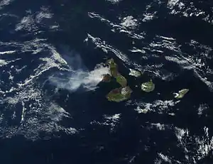 Fernandina Island (Spanish: Isla Fernandina, named after King Ferdinand of Spain, the sponsor of Christopher Columbus) (formerly known in English as Narborough Island, after John Narborough) is the third largest, and youngest, island of the Galápagos Islands, as well as the furthest west.[2] Like the others, the island was formed by the Galápagos hotspot. The island is an active shield volcano that has most recently been erupting since April 11, 2009.[3]