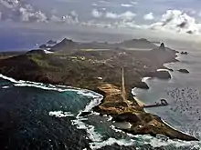 The islands of this archipelago are the visible parts of a range of submerged mountains. It consists of 21 islands, islets and rocks of volcanic origin. The main island has an area of 18 km2 (6.9 sq mi), being 10 km (6.2 mi) long and 3.5 km (2.2 mi) wide at its maximum. The base of this enormous volcanic formation is 756 m (2,480 ft) below the surface. The volcanic rocks are of variable though mainly silica-undersaturated character with basanite, nephelinite and phonolite among the lava types found.[35] The main island, from which the group gets its name, makes up 91% of the total area; the islands of Rata, Sela Gineta, Cabeluda and São José, together with the islets of Leão and Viúva make up the rest. The central upland of the main island is called the Quixaba.[36]