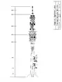 Line drawing of the Fernmeldeturm showing its 1975 state Line drawing of the Fernmeldeturm showing its 1975 state