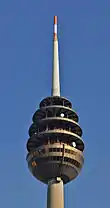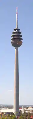 The Fernmeldeturm Nürnberg, the tallest structure in Bavaria, is a telecommunication tower in Nuremberg, southern Germany. Also called the Nürnberger Ei ("Egg of Nuremberg") because of its egg-shaped tower basket in a height of 185 metres, it is 292 metres high and was built between 1977 and 1980 according to blueprints by architect Erwin Heinle.
