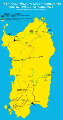 It was the second railway operator in Sardinia, after Ferrovie dello Stato, having 203 kilometers of railways used for public transport, plus another four tourist lines, known as Trenino Verde, which run through the wildest parts of the island.